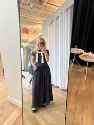 The most perfect versatile day dress - can EASILY dress up or down. Normally a S/M but rented the XS and it still was a little roomy. Fit like a midi dress on me as a 5’8” girlie. Bought it!