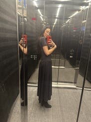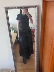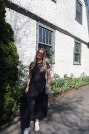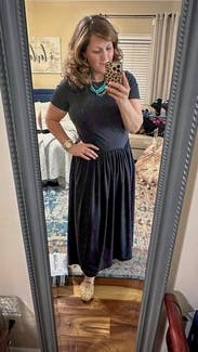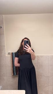 I wore this for a dinner date with a girl friend. It’s soft, doesn’t wrinkle and always love a good black dress. It’s not the most flattering dress but it hides me stomach which in tighter dresses my sweet little pooch will stick out so this was nice