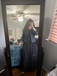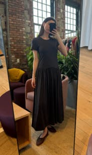i wore this for work and also to walk around a farmers market! its a long maxi, with a good but of volume! the fabric is light, and the top is quite form fitting, so i wore a longline sports bra to stay sleek underneath. i loved the drop waist and it was super easy to throw on!