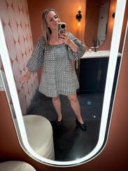 Super cute dress! I sized down to XS since the babydoll look is usually more oversized, it was a bit shorter than I would have liked on me at 5’7 but I still wore it