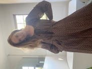 Beautiful fall print but the tie waist and then the silk black tie at the top was too much. Wouldn’t rent again
