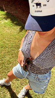 Love this top, you can’t wear a bra with it because it’s very low cut- super flattering for a weekend picnic or brunch situation