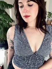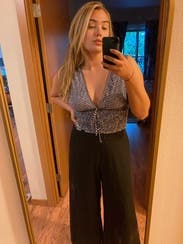 I was skeptical to wear this top out as it is super low cut and revealing. But I decided to wear it out to a date night with my husband and I felt very cute. The scrunched material isn’t the most comfortable fabric (it’s kind of itchy) but for just a night out it was tolerable. I did wear it twice but I didn’t feel like it would be a long term fit in my closet for how revealing it was. Also, I did not wear a bra with it as it felt supportive enough for me but anyone needing a bra would probably have a hard time concealing it with how low the cut is.