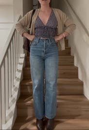 So cute and flattering!! Hard to wear a bra. Wore with loose jeans and sneakers it was perfect!