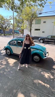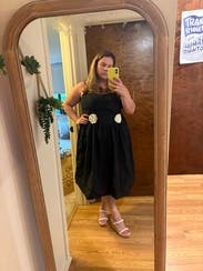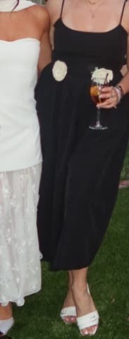 I've rented a few pieces now from this brand and the sizing has been consistent across the board, which seems a rarity these days. The straps are adjustable so it worked for my small chest even though there was room for a fuller chest. I know this rose appliqué is kind of an overdone trend like bows, but I think the way it's stated on this dress is timeless and pretty. Reminded me of a modernized 80's prom dress, that you could wear to dinner without looking like you're trying too hard. I paired it with white sneakers - easy! Included a photo of the back because I love to see that when I'm choosing my rentals too!