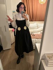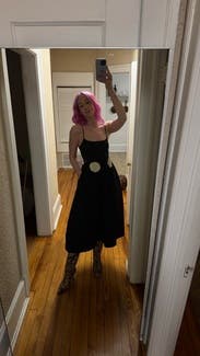 Surprised this dress isn't always unavailable. It was so perfect. The fabric is kind of sporty feeling so it gives an edgy vibe to the dress. I wore it so many times. Agree with other users though, a zipper would be nice bc it was so hard to get on and off. Would have bought if it wasn't so expensive.