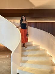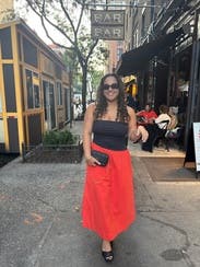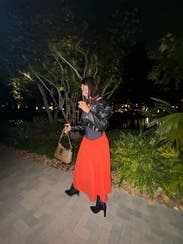 The color contrast and asymmetrical skirt was so fun, could dress up or down