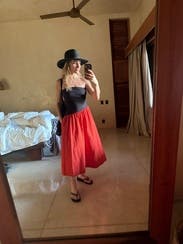 Loved the fit of this drop waist dress…top was stretchy but held up and the red bottom really popped