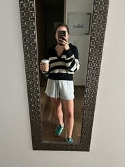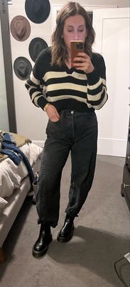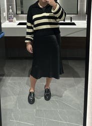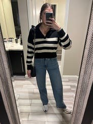 Good for transition. Cropped and I have a long torso, so I layered. If you have a big bust like me, it can give “hamburgular” vibes with the stripe
