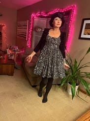 Wore this to a New Years Eve Masquerade party, so much fun! Opted into this as opposed to a sequin look to ring in the new year and it was a great way to change it up. I think this runs on the larger side, you may want to size down. Very short dress, too. I’m 5’11 and if I didn’t have black pantyhose on, it wouldn’t have left much to the imagination.