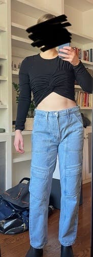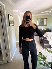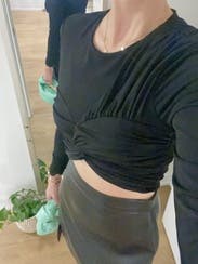 Classy black crop top with a twist! Fabric was heavy and sleeves long.