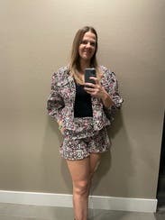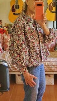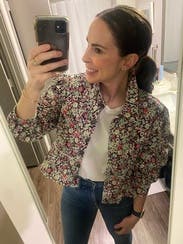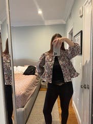 This jacket was so fun! It was lightweight, soft, and perfect for wearing in slightly warmer temperatures. I wore this several times - to work, dinner, and more. Every time I got so many compliments. Only reason why it’s a 4/5 stars is because the ruffle would flip up and I found myself often pushing it back down. TTS but a little boxy