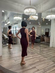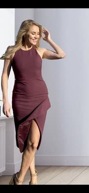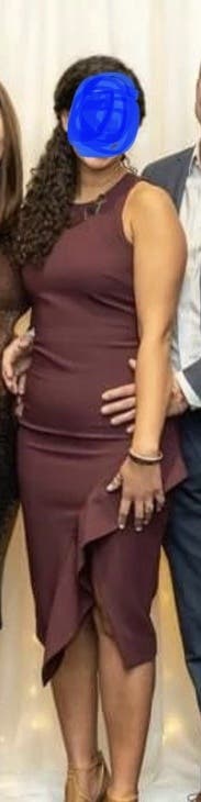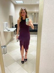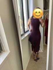 Between the incredible customer service and this gorgeous dress, I am officially hooked! This dress is a beautiful plum color. It is a tight dress but the material was thick so that it accentuated my figure instead of showing flaws. I am 5'6 and 145 lbs, I am usually between a 6 or an 8. I originally ordered a different dress that FedEx delivered to the wrong address. When I contacted RTR that my dress was missing they immediately overnighted me this dress and couldn't have been more helpful.