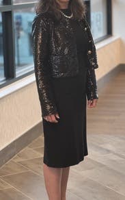 This was a cute jacket that I wore for work. It’s a little sparkly and a little edgy. I will probably rent again.