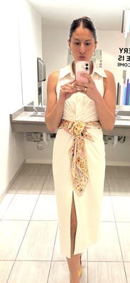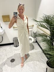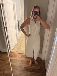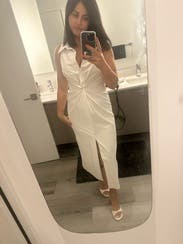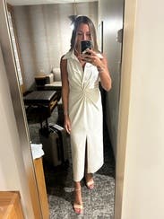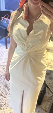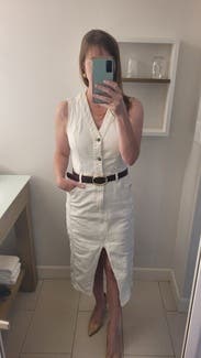 This dress was the PERFECT crisp white work dress. It was great in the Florida heat as well. Not see through and the neckline was not too deep, which is normally the case for me with this brand. It was so flattering!!