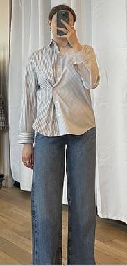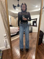 I don’t think I’ve ever loved a pair of jeans more!! I’m 5’7 and relatively straight through the waist (little to no hips) with full thighs, a booty, and a little belly and these fit me like a DREAM. I was a little concerned at first because the thighs felt a smidge tight when I first put them on, but as I wore them, they relaxed into an absolute perfect fit. I almost bought these and will 100% rent again. I wore them on multiple occasions with a T-shirt and blazer or a t-shirt and a longer cardigan.
