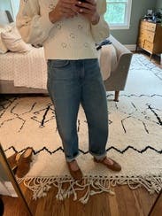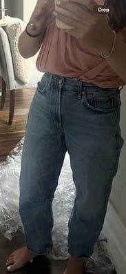 I loved these so much I purchased them. They are the perfect barrel jean. I’ve worn them casual and more dressed up.