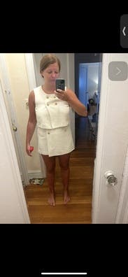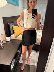 I loved this top. It fit true to size and was very well made. The fabric and detailing gave it a polished, elevated look, and I appreciated that I could comfortably wear a bra with it. Paired with the matching skort, it made for such a chic and effortless outfit.