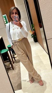 I hated to send this set back. Fit was perfect, felt trendy and classic all at the same time. You won’t regret it!