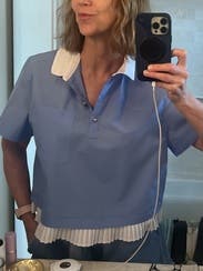 This is so cute. Got a compliment on it from a very stylish person - it’s that unique. Looks very European and different from typical tops. Very light and airy too. First time renting from this brand and can’t wait to rent more now!