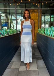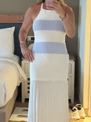 I find most maxi dresses have too much fabric and can be overwhelming this was not the case for this dress. It’s lined and the stripes really accentuate the waist in a good way, the placement stripes are super slimming. I will rent again one size smaller in an XS and purchase. The small fit well but being knit I always size down.