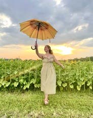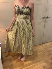 Such a fun and happy dress. Fit like a dream and very comfortable. Not enough chest to fill out completely, but adjustable straps were the saving grace there. Wore for summer evening flitting about the sunflower fields. Nice fabric for spicy nights.