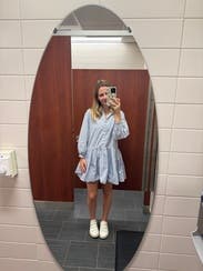 The cutesttt dress, but size down! It has a ton of room.. this is perfect for dinner, work, or casual day to day errands! Love