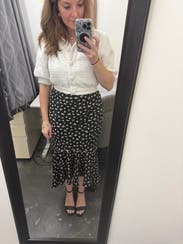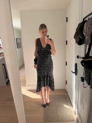 Loved the little peplum detail on the waist and the polka dot print. Wore from day to night. TTS fit