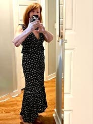 Easy to dress up or down with shoes or sneakers and accessories. The top was a little loose in the bust area and straps. Also didn't love how the straps were sewn to overlap the fabric.