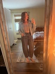 This is really cute in person. Soft denim. TTS. Sleeves were a perfect length. I had a hard time styling it because it’s giving a little 80’s vibe and was too “cute” to pair with feminine dresses IMO. Definitely has more of a structured look. But overall, a great jacket and I’d rent again!