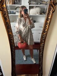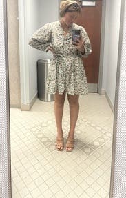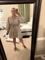 This was such a comfortable dress for a travel and office day. Wore with sneakers and the length was fine for work, but probably would have felt short with heels. The print was even cuter in person! Great flow at the bottom of the dress.