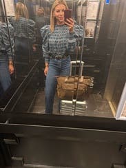 I really liked this top. Wore it to work on a casual work day with dark jeans. The sleeves are puffy! I received lots of compliments, even from a complete stranger. Will rent again.