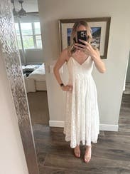 This dress was lovely and a perfect white staple for your closet. You can dress it up or down. I wish I would have sized down because the 2 was a little big is the chest.