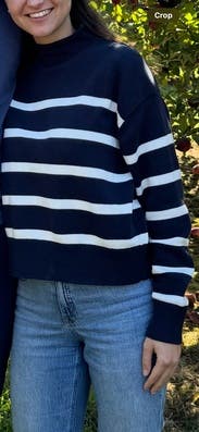 Very cute and comfortable sweater. I am obsessed with the fit. I considered purchasing but it was a little too expensive.