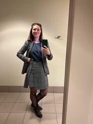 Loved this so much I tried buying from Club Monaco! Unfortunately they were on backorder and ended up refunding my purchase. I will absolutely rent this again (and probably just buy from RTR!). The color blue is soft, chic, and professional.