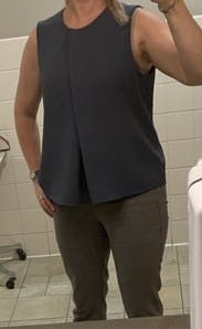 This shirt isn't a show stopper, but it's flattering and good quality and comfortable - love when I find a work top that doesn't need to be tucked in! I will wear this multiple times. I could have probably sized down to a medium for a slightly more fitted look (I'm 5'4, 160lbs, 36DD) but the large looks fine and it's very comfortable without being too baggy.