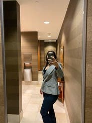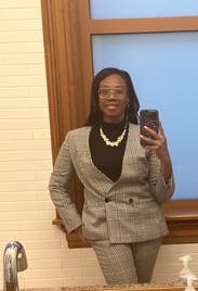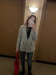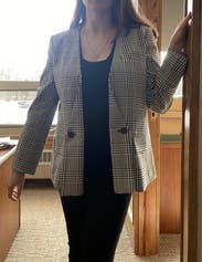 I rented this blazer and the matching pants for some conferences that I needed to go to. I really enjoyed the pants and thought they fit well! The blazer I didn’t enjoy as much. I didn’t like how it puffed outwards and felt that wasn’t flattering on me. If you don’t mind that, then definitely rent this!