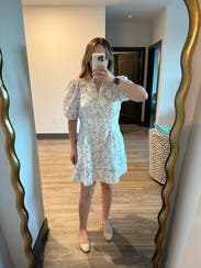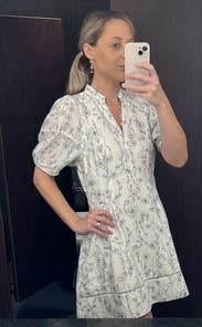 A seemingly simple dress but quality materials. Pockets (hey now),. The sleeves are puffy but not overly so and the details lovely. The print is feminine and understated. I received several compliments. Flattering and able to be worn for a variety of occasions. Haven’t sent this one back yet!