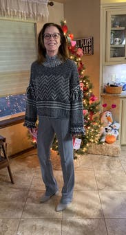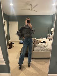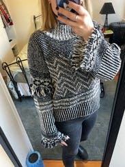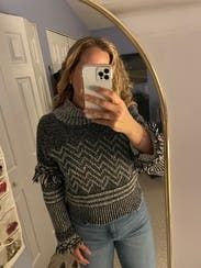 I wore this so many times. I loved it. What a fun winter sweater. Would've kept if it was a little cheaper.