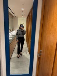 This was cute. Def a step up sweater and could have made it look even more. Ice with dressier pants. I will say that after closer inspection it's navy though it looks black. It's a little tight in the shoulders so it lifts up when you raise your arms. Nice and warm for winter
