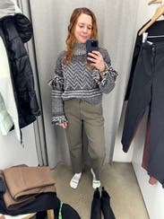 A really fun and unique sweater, great for winter. A little more cropped than I was expecting, but good with high waisted pants.