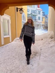 Love the vintage ski style of this sweater. Wore it on 2 ski trips. It’s on the boxier side which I didn’t mind but if you want it to be fitted I would size down.
