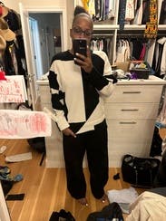 Giant cozy sweaters are staples of my winter wardrobe and this one is really great because it’s just oversized enough that it feels effortlessly comfortable, but not so much that the sleeves are crazy long or you totally disappear inside. So far I have worn it twice during my rental (once with black wide leg jeans, once with faux leather leggings) and have gotten compliments on both outfits. The abstract print is unique but the black and white still go with everything. Really happy with this pick