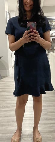 A little snug around my chest area but the dress is true to size and the length for my height of 4’11” was perfect for work.