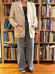 Nice neutral linen blazer. Fit my petite frame. Light weight. Wrinkles easily.