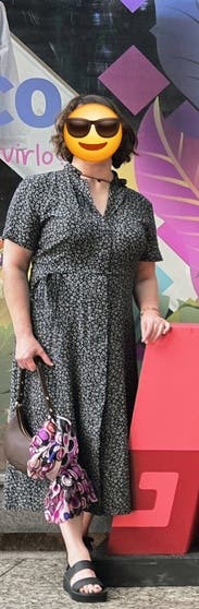 This dress fit great but it had to add some fresh sneakers and a high pony to not let it make me look older than I wanted to. Gave of the good girl vibe.