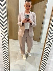 Love these! The comfort of the stretch waist is KEY for a long work event day. Functional pockets, too. Slightly scratchy fabric in case you’re very sensitive, but would recommend! Looked great with chunky sneaks and the matching blazer.