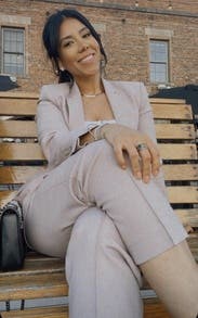 I love this suit. The material is great. It hugs your shape. The perfect mix of business casual!