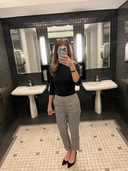 These pants and the matching blazer were perfect for some conferences that I had to attend. The pants fit well and were flattering. I would definitely rent them again