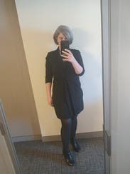 Wore this for a work conference. It's very low cut, so I wore a black shell underneath